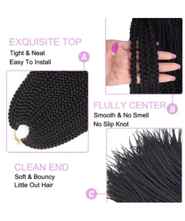 Extensiile de tip box braids din par sintetic se aplica pe parul impletit spic cu ajutorul unei crosete pentru extensii .Un pachet contine 22 cozi cu latimea de 1 cm si lungime de 61 cm. Pentru o coafura completa sunt necesare intre 5-7 pachete.