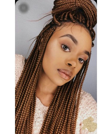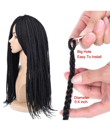 Extensiile de tip box braids din par sintetic se aplica pe parul impletit spic cu ajutorul unei crosete pentru extensii .Un pachet contine 22 cozi cu latimea de 1 cm si lungime de 61 cm. Pentru o coafura completa sunt necesare intre 5-7 pachete.