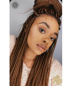 Extensiile de tip box braids din par sintetic se aplica pe parul impletit spic cu ajutorul unei...